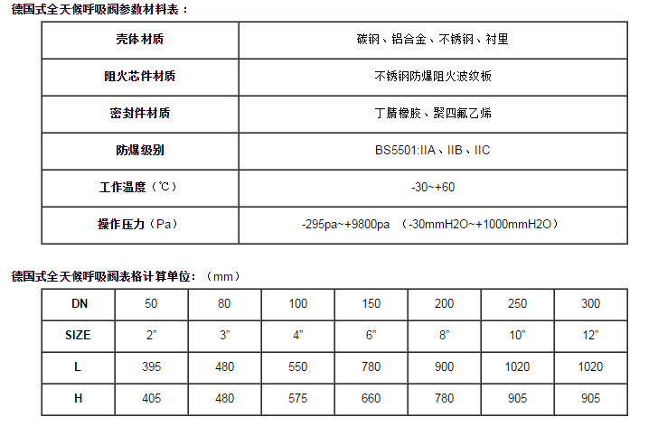1、我廠承接各種非標壓力德國式全天候(防爆阻火)呼吸閥;