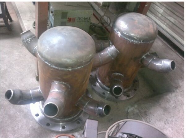 副噴嘴4-6個,副噴嘴位的同于同一圓周上,均布。副噴嘴的仰射角理論上噴角越大越好,但受到封頭形狀和噴嘴的自身的形狀限制而局限在一般在55-65度間。