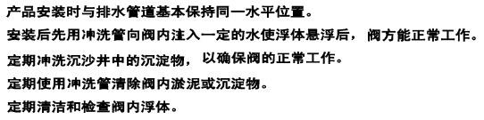 1、 管道內介質全為水或含有及少量浮油時,由于浮體被浮起,通道是敞開的,水被排出。