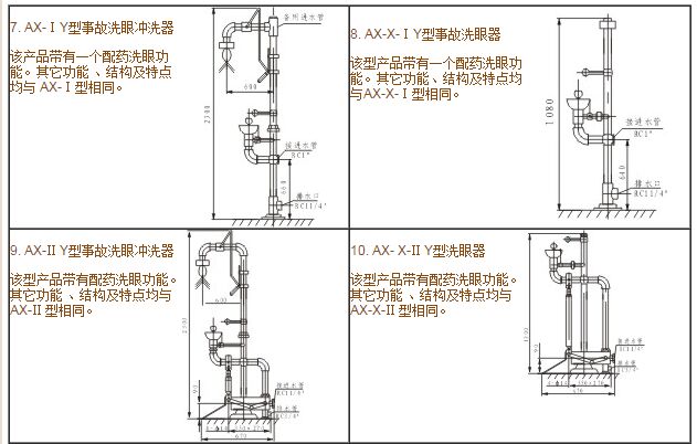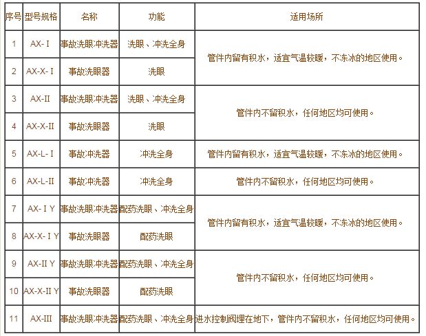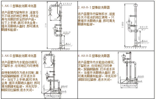 AX型系列安全事故洗眼沖洗器產品名稱及型號規格表